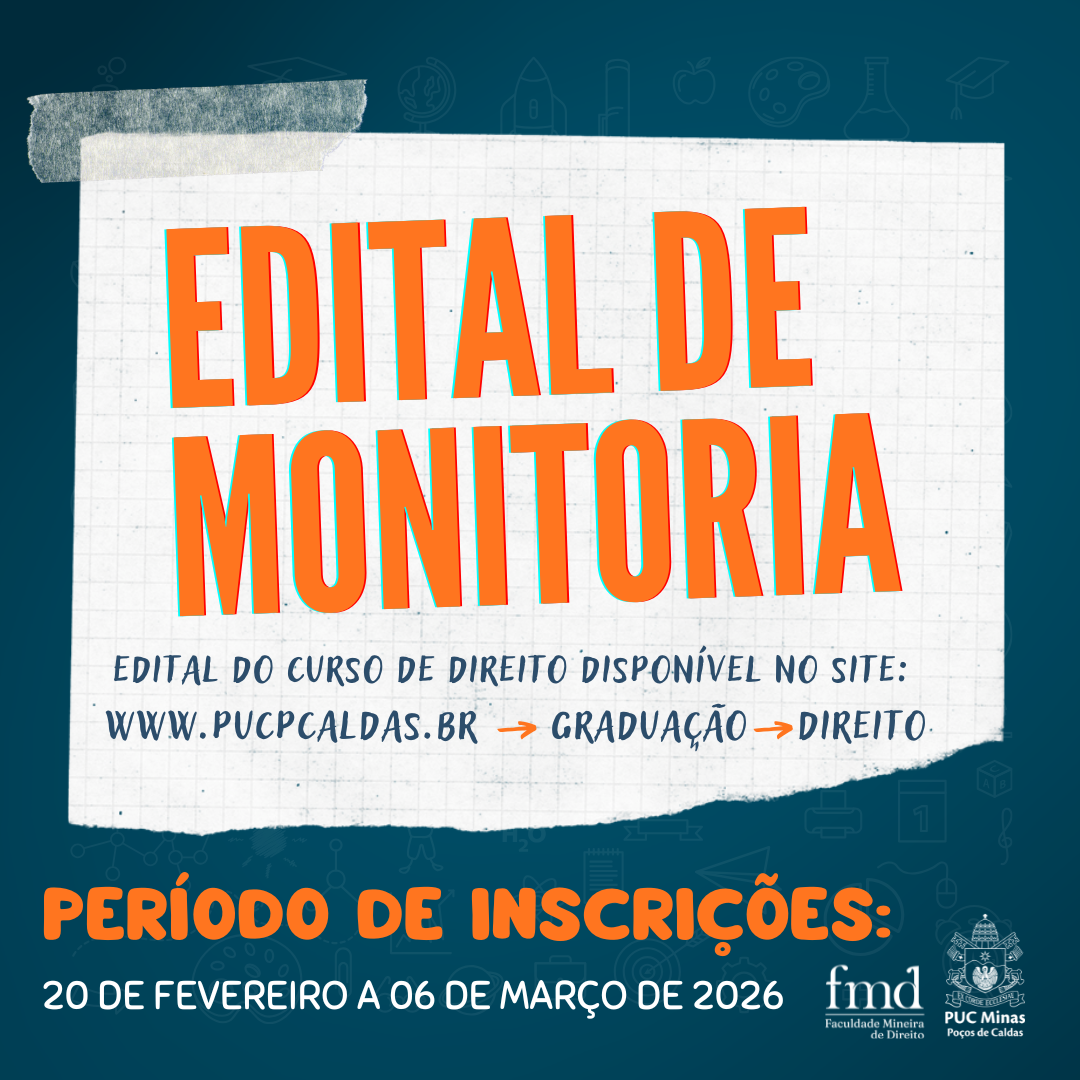Encontram-se abertas, na Secretaria do Curso de Direito do Campus Poços de Caldas, de 20 de fevereiro de 2026 a 06 de março de 2026