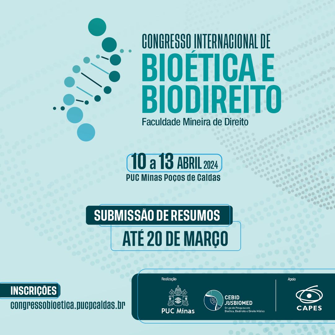 10 a 13 de abril, ocorrerá o CONGRESSO INTERNACIONAL BIOÉTICA E BIODIREITO DA FACULDADE MINEIRA DE DIREITO no campus da PUC Minas, em Poços de Caldas.